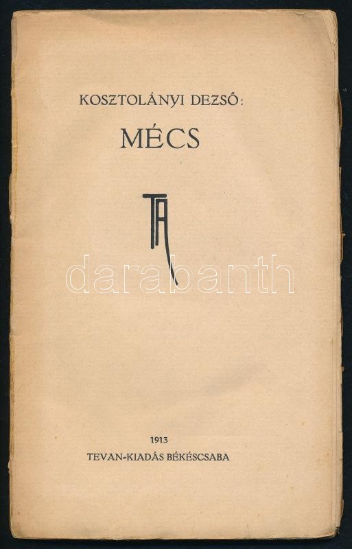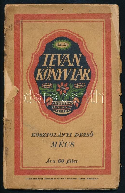 https://www.darabanth.com/en/319-Online-auction/319.0/Books/Books-Other-rarities~1500016/Kosztolanyi-Dezso-Mecs-Tevan-konyvtar-34-35-Bekescsaba-1916-Tevan-kiadas-Kiadoi-papi~II1759536