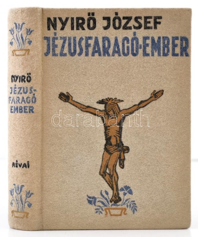 Nyírő József: Jézusfaragó ember. A borító rajza Végh Dezső munkája. Bp., (1937), Révai. Kiadói halina-kötésben, ajándékozási sorokkal, jó állapotban.