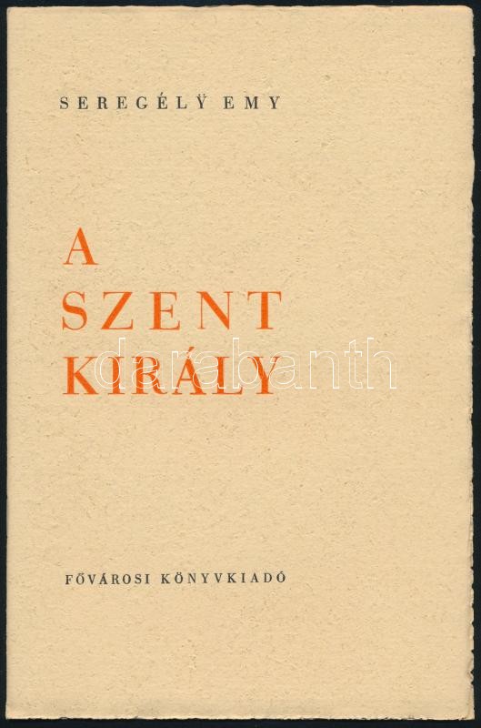 Seregély Emy: A szent király. Istókovics Kálmán (1898-1990) fametszeteivel. Bp.,1938, Fővárosi Könyvkiadó,(Fővárosi Nyomda Rt.-ny.) Kiadói papírkötés.