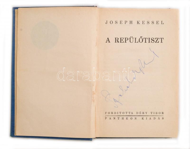 Joseph Kessel: A repülőtiszt. Fordította Déry Tibor. Budapest, é.n., Pantheon. Kiadói kopottas egészvászon kötésben.