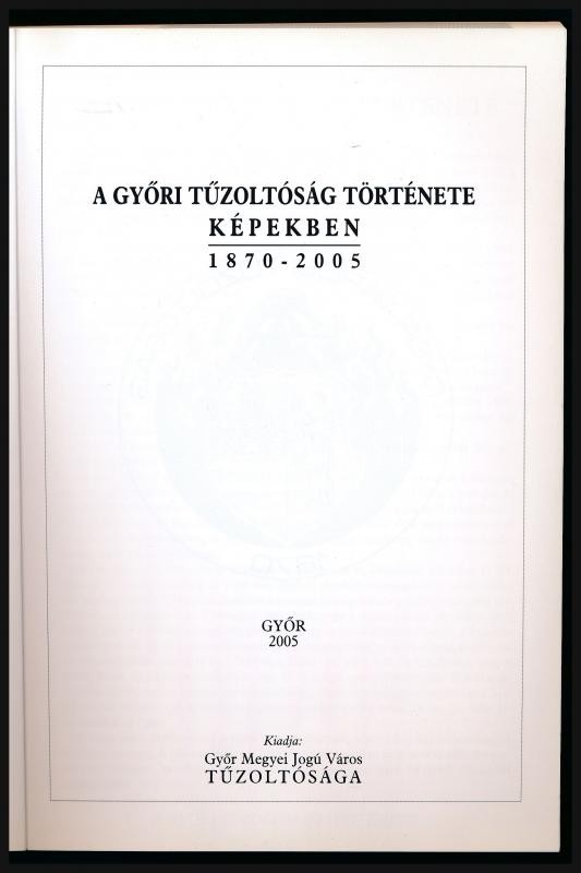 A győri tűzoltóság története képekben. 1870-2005. Győr, 2005, Győr Megyei Jogú Város Tűzoltósága. Kiadói papírkötés. Megjelent 1000 példányban.