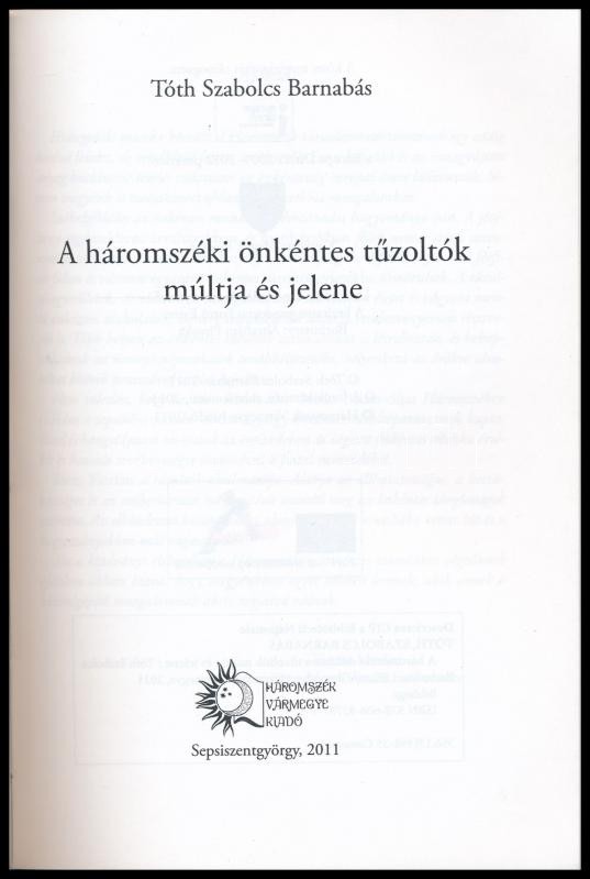 Tóth Szabolcs Barnabás: A háromszéki önkéntes tűzoltók múltja és jelene. Sepsiszentgyörgy. Háromszék Vármegye Kiadó. Kiadói kartonált papírkötésben.