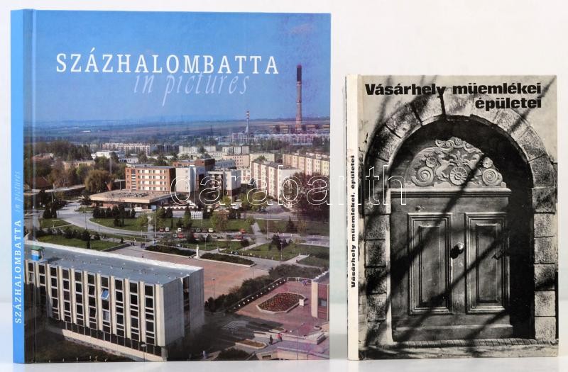 Vegyes helytörténeti témájú könyvek, 2 db: Vásárhely müemlékei, épületei. Hódmezővásárhely, 1976, Hódmezővásárhely. Kiadói kartonált papírkötés, fekete-fehér fotókkal. Jó állapotban. Százhalombatta in pictures. Szerk.: Szalai Gáborné, Vincze Magdolna. Százhalombatta, 2000, Százhalombatta Város Önkormányzata. Kiadói kartonált papírkötés, angol nyelven. Jó állapotban.