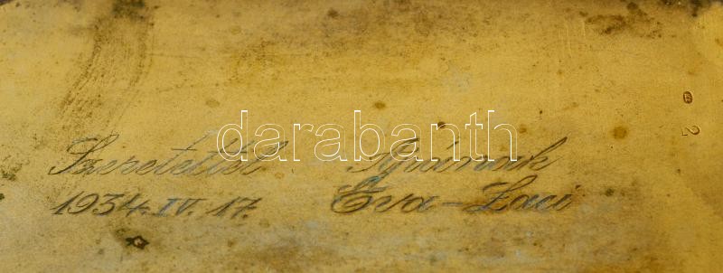 Díszes ezüst (Ag.) cigarettatárca monogrammal, belül ajándékozási feli...