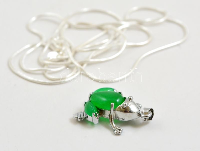 Ezüst (Ag) kígyó lánc, jelzett, h: 60 cm, nettó: 5,2 g + fém foglalatos jáde medállal, 2x1,5 cm