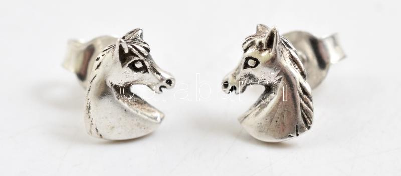 Ezüst(Ag) lófejes fülbevalópár, jelzett, 0,9x0,8 cm, nettó: 1,4 g