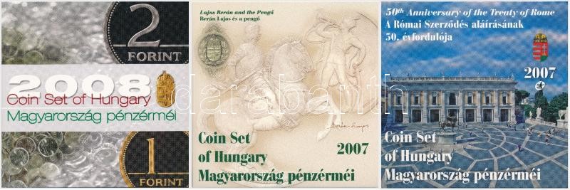 Description: 2007. 1Ft-100Ft (8xklf) forgalmi sor, benne 50Ft "50 éves a Római Szerződés" + 2007. 1Ft-100Ft (8xklf) "Berán Lajos és a pengő" forgalmi sor, benne "Berán Lajos és a pengő" Ag emlékérem (10g/0.999/27mm) + 2008. 1Ft-100Ft (7xklf) "Búcsú az egy- és kétforintostól" forgalmi sor dísztokos szettben T:BU