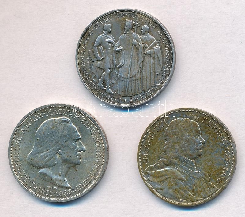https://www.darabanth.com/en/319-Online-auction/319.0/Numismatics/Hungarian-coins-and-coins-with-Hungarian-mint-marks~2000009/1935-2P-Ag-Pazmany-plus-2P-Ag-Rakoczi-plus-1936-2P-Ag-Liszt-Ferenc-T1-2-patina--Adamo-P71-~II1759129