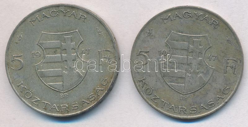 1947. 5Ft Ag "Kossuth" (2x) T:2-