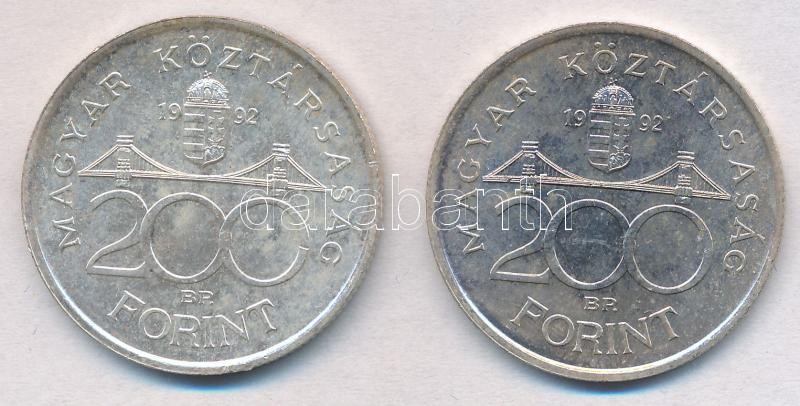 1992. 200Ft Ag "MNB" (2x) T:2 kis patina