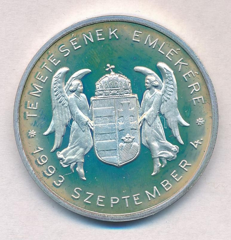 Description: 1993. "Vitéz Nagybányai Horthy Miklós Magyarország kormányzója / Temetésének emlékére 1993 szeptember 4." jelzett Ag emlékérem, tanúsítvánnyal, tokban (32,84g/0.925/40mm) T:1- eredetileg PP