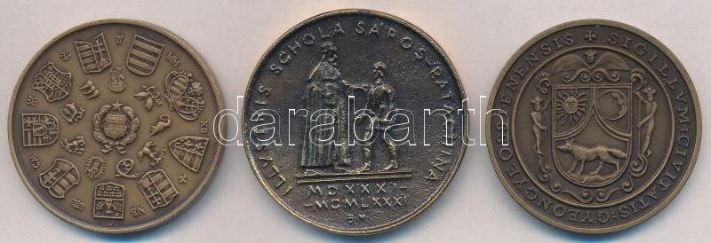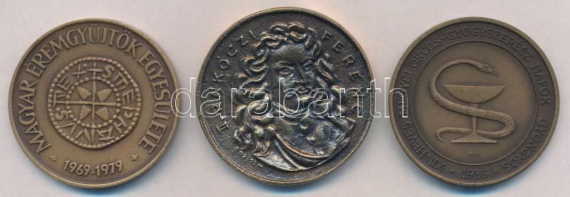 3db-os Br emlékérem tétel, benne 1979. "Magyar Éremgyűjtők Egyesülete" + 1981. "Rákóczi Ferenc / Illvstris Schola Sáros-Patachina" + 1985. "Heves megyei Orvos-Gyógyszerés Napok Gyöngyös" T:2,2-