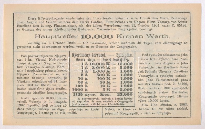 Budapest 1903. "Tanuló Sorsjegy" 1K értékben, felülbélyegzés...