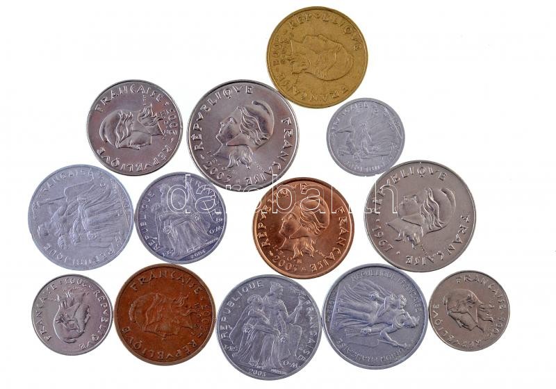 Description: 15db klf fémpénz Francia Óceánia szigeteiről, közte Francia Polinézia, Új-Kaledónia T:1-,2