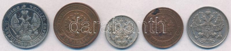 Orosz Birodalom 1839. 25k Ag "I. Miklós" + 1911. 2k Cu + 1914. 10k Ag +1915. 1k Cu + 20 Kopeks Ag "II. Miklós" T:1--2- ph., patina