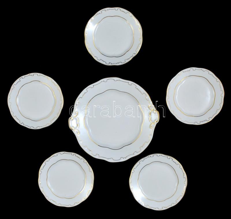 Zsolnay süteményes készlet, hiányos, összesen: 6 db, jelzett, hibátlan...