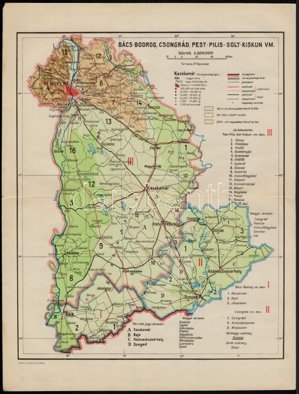 Bács-Bodrog, Csongrád és Pest-Pilis-Solt-Kiskun vármegye térképe, 1:80...