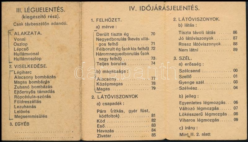 cca 1938-1945 Katonai jelkulcs repülőkhöz, időjárásjelentéshez, 12x21 cm