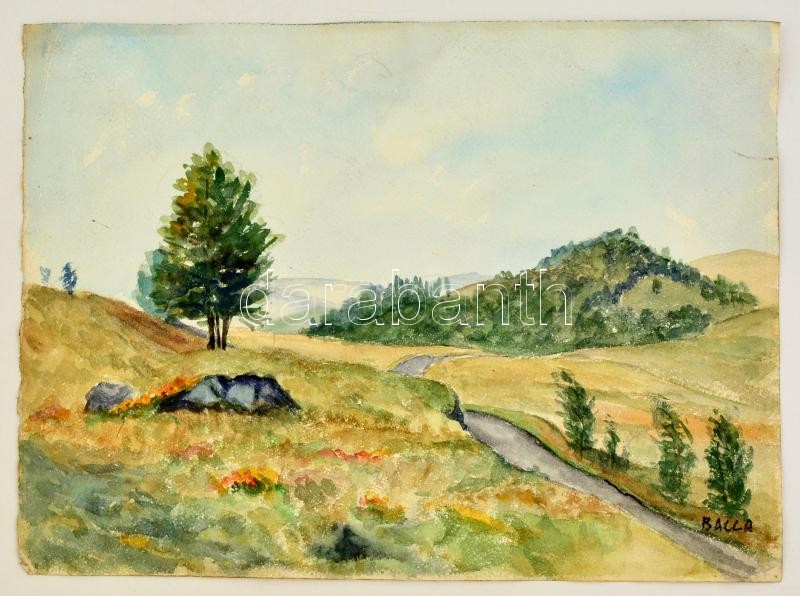 Balla jelzéssel: Dombos táj. Akvarell, papír, kis szakadással, 30×40 c...