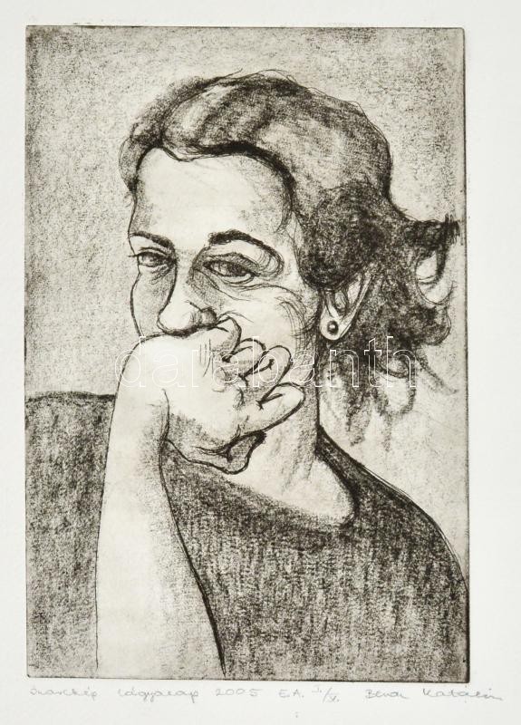 Beron Katalin (?- ): Önarckép 2005, lágyalap, papír, jelzett, számozot...