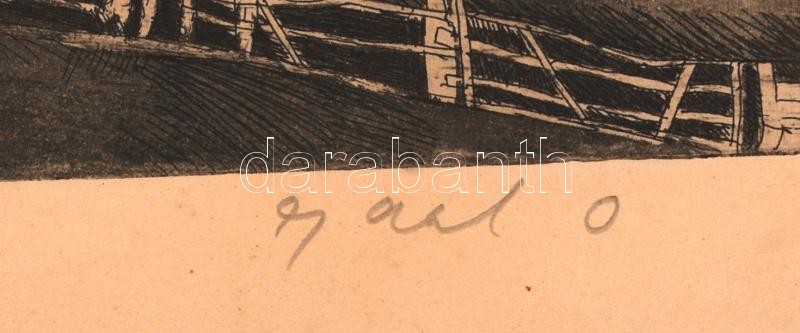 Gaál Domokos (1940-2009): Bodrog part. Rézkarc, papír, jelzett, üvegez...