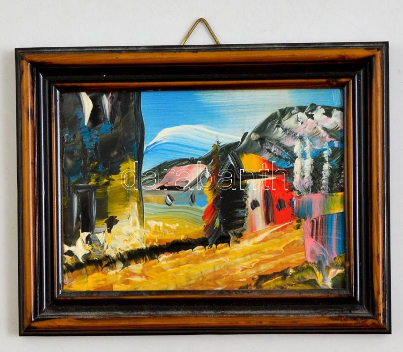 Jelzés nélkül: Utcarészlet. Olaj, farost, műanyag keretben, 7,5x11 cm