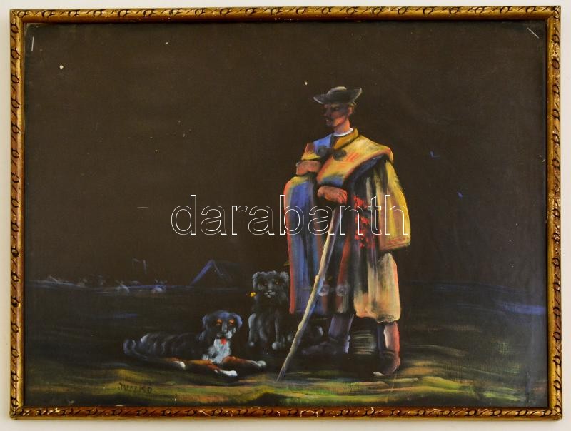 Juszkó jelzéssel: Juhász. Festett selyempapír, üvegezett keretben, 31×...