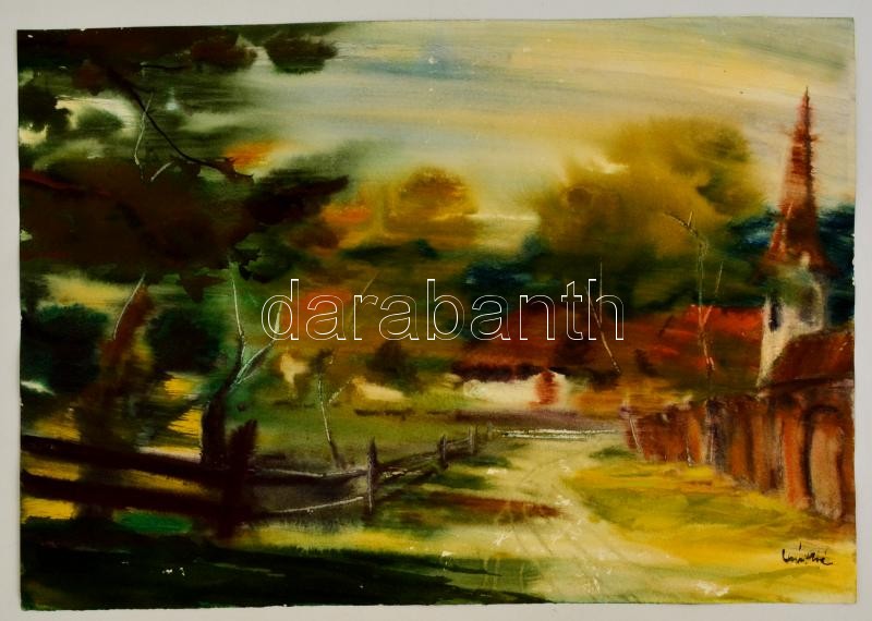 Máthé jelzéssel: Székely falu, akvarell, papír, 35×50 cm
