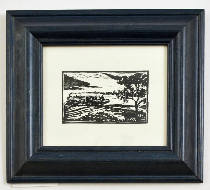 Nagy Vince (1939-): Uszály a Dunán. Linó, papír, jelzett a linón, üvegezett keretben, 6×10 cm