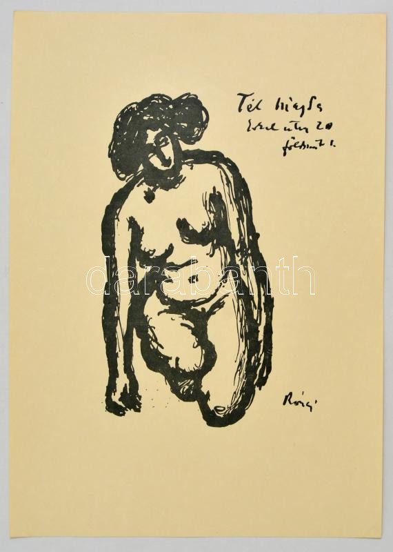 Rippl-Rónai József (1861-1927): Térdelő akt, cinkográfia, papír, jelze...