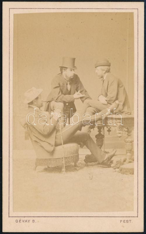 cca 1860-70 Komák,(Plachy József, Sréter István, Balagy Dezső), keményhátú fotó, Pest, Gévay Béla, a hátoldalon feliratozva, 10x6 cm.