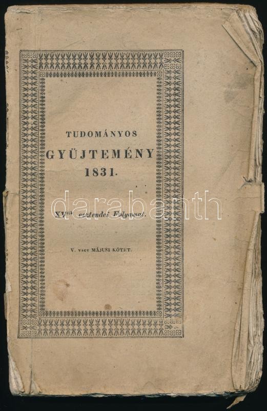1831 Tudományos Gyűjtemény 1831. XV. évfolyam, V. kötet. Szerk.: Vörös... https://www.darabanth.com/en/319-Online-auction/319.0/Other-collectibles/Printed-Materials~28/1831-Tudomanyos-Gyujtemeny-1831-XV-evfolyam-V-kotet-Szerk-Vorosmarty-Mihaly-Pest-Tr~II1758811