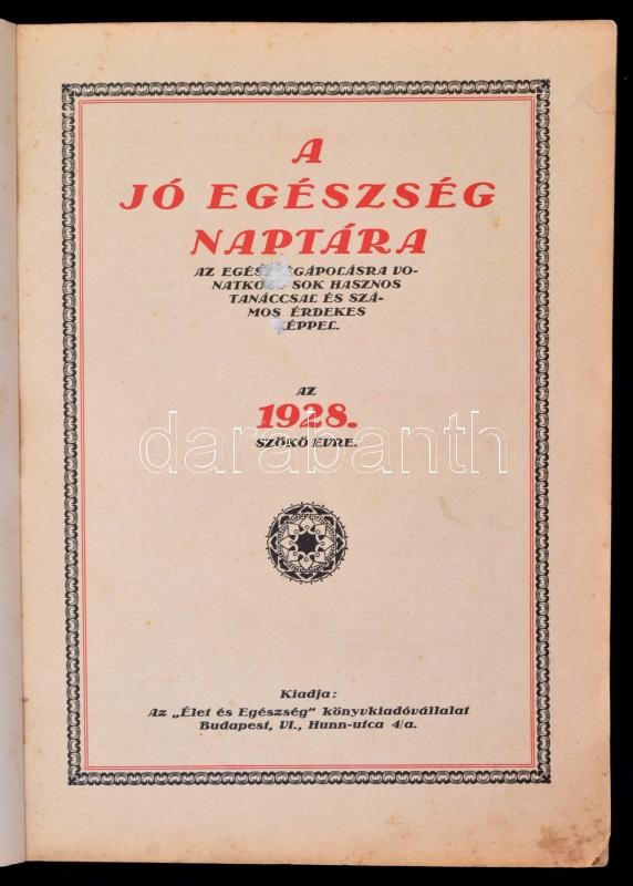 1928 Jó egészség naptára. Bp., 'Élet és Egészség', kissé fol...