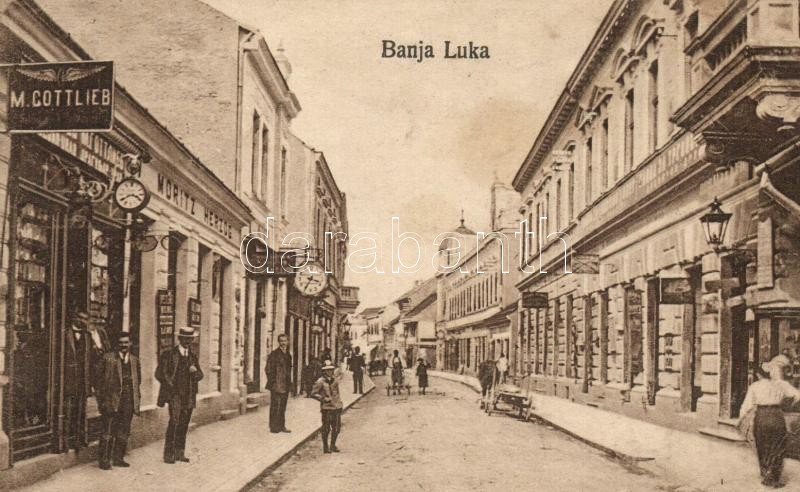Banja Luka, Banjaluka; street view, M. Gottlieb's, Moritz Herzog&...