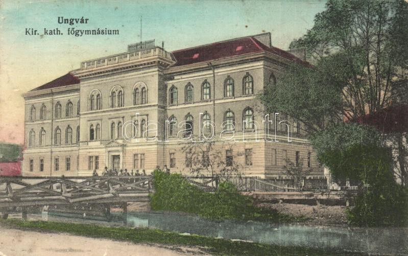 Ungvár, Uzshorod, Uzhhorod, Uzhorod; Kir. katolikus főgimnázium, híd. Steinfeld Dezső kiadása / Catholic grammar school, bridge (EK)