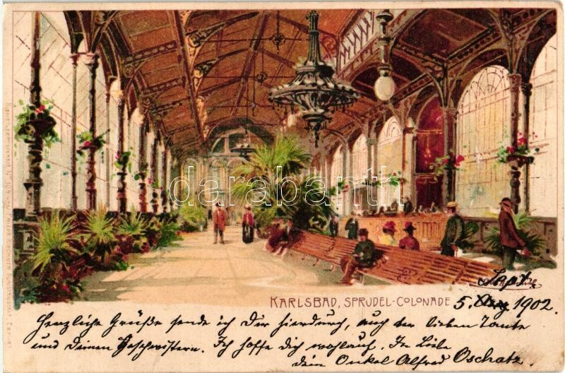 Karlovy Vary, Karlsbad; Sprudel-Colonade. Kunstlerpostkarte No. 104. v...
