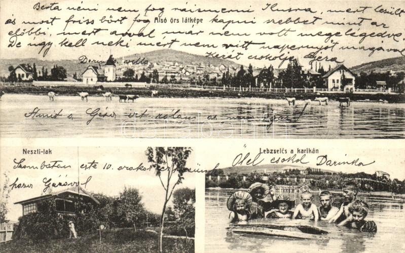 Alsóörs, Balaton part, Neszti lak, villa, Lebzselés a karikán, fürdőző...