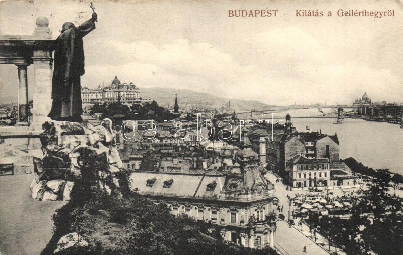 Budapest I. Kilátás a Gellért-hegyről, Döbrentei tér, üzletek, Tabáni sörcsarnok, Szent Gellért szobor. Würthle & Sohn (EK)