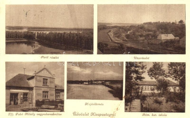Kisapostag, part, utca, római katolikus iskola, Ifj. Fabó Mihály vegyeskereskedése