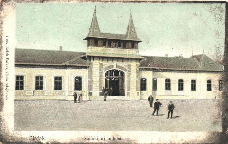 Siófok, Új indóház, Vasútállomás. Reich Farkas kiadása (kopott sarkak ...