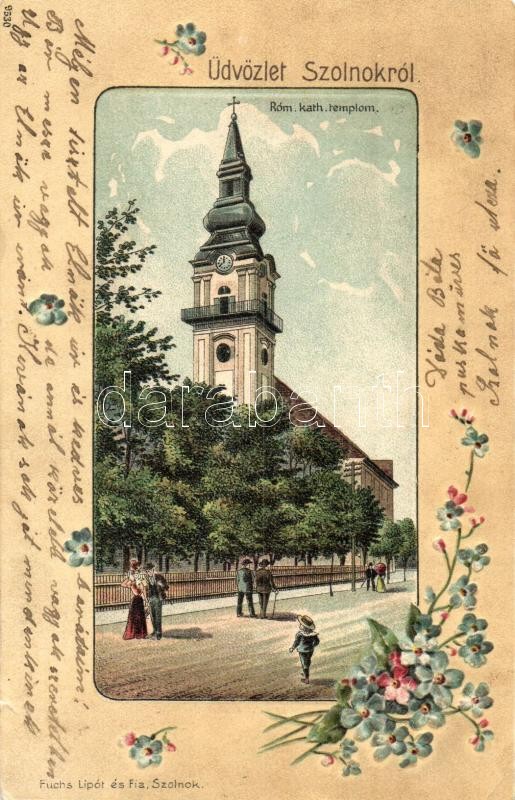 Szolnok, Római katolikus templom, utcakép. Fuchs Lipót és Fia floral A...