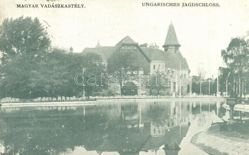 Description: 1910 Wien, Internationale Jagdausstellung, Ungarisches Jagdschloss. Druck und Verlag J. Weiner / magyar vadászkastély / Hungarian hunting castle, International Hunting Exposition in Vienna (szakadás / tear)