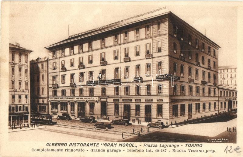 Torino, Turin; Albergo Ristorante Gran Mogol / hotel and restaurant, tram, automobiles (fl)