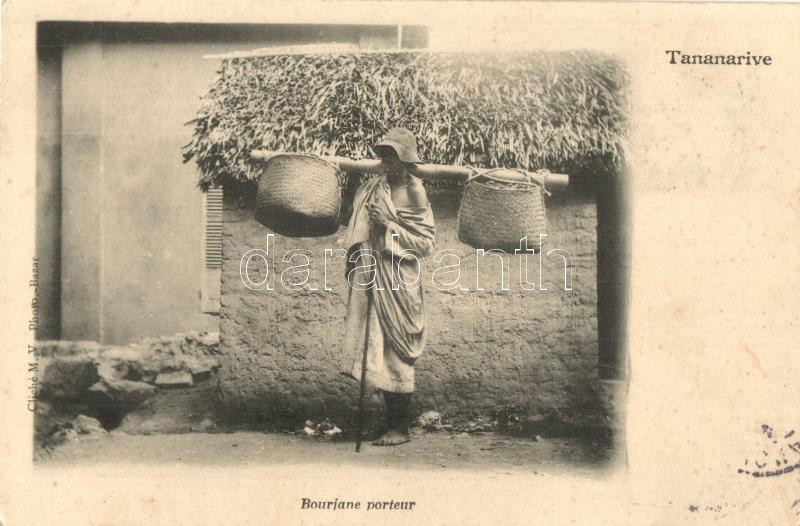 Antananarivo, Tananarive; Bourjane porteur / Bourjane carrier, folklore
