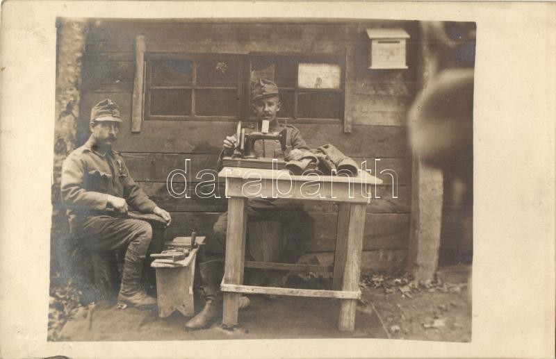 1917 Bukovina, szabó, ruhajavító és cipész a fronton a táborban, varró... https://www.darabanth.com/en/319-Online-auction/319.0/Postcards/Militaria~2500087/1917-Bukovina-szabo-ruhajavito-es-cipesz-a-fronton-a-taborban-varrogep-WWI-KuK-milit~II1540722