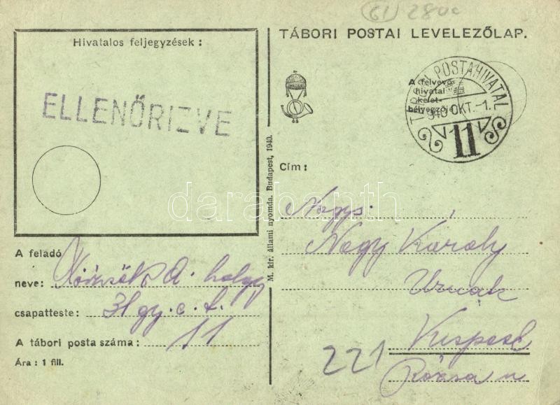 1940 Hiszekegy. Tábori Postai Levelezőlap / WWII Hungarian military fi... https://www.darabanth.com/en/319-Online-auction/319.0/Postcards/Militaria~2500087/1940-Hiszekegy-Tabori-Postai-Levelezolap-WWII-Hungarian-military-field-post-irredenta-s-Gers~II1760271