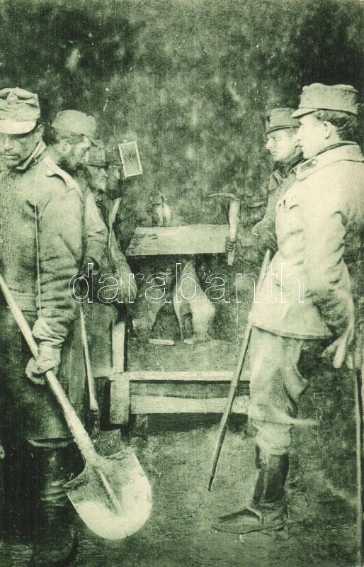 Description: Üdvözlet a hidász-ünnepről. Aknafolyosó az ellenséges állás felé. Segélylap a budapesti hidászok özvegy és árva alapja javára / WWI K.u.k. military pontooners, underground mine corridor