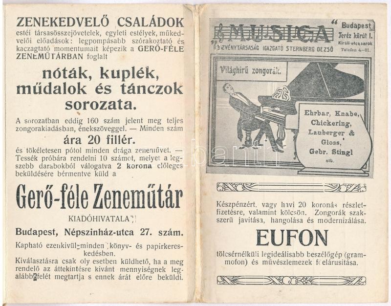 Mikor a legszebb nóta szól! Gyönyörű 10 cigányos Magyar Népdal. Gerő-féle Zeneműtér Kiadóhivatal, Fedák Sári - leporello füzet 10 képeslappal / Hungarian gypsy music sheet postcards, leporello booklet with 10 cards