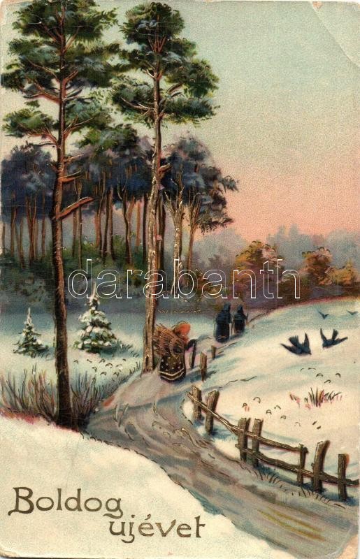 Description: 11 db régi dombornyomott üdvözlőlap, litho is (Karácsony, Újév, Húsvét) / 11 pre-1945 embossed greeting cards, motive cards, Emb. litho also (Christmas, New Year, Easter)