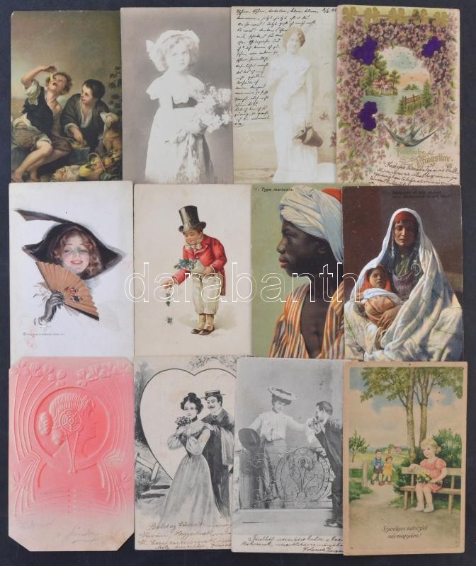 94 db régi motívumlap: üdvözlőlapok, ünnepek, színész, művész, folklór, hölgyek, stb. / 94 pre-1945 motive cards: greeting cards, holidays, actor, art postcards, folklore, ladies, etc.